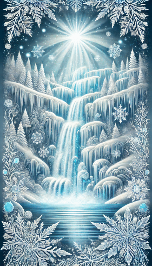 La beauté figée de cette cascade annonce un temps de pause bénéfique dans ta vie. Tout comme l’eau suspendue, tes efforts semblent momentanément arrêtés, mais ce calme prépare une renaissance éclatante. De ce silence naîtra une clarté nouvelle, où tes projets reprendront leur cours avec force et pureté. Garde confiance, car sous la glace, la vie continue de s’écouler.